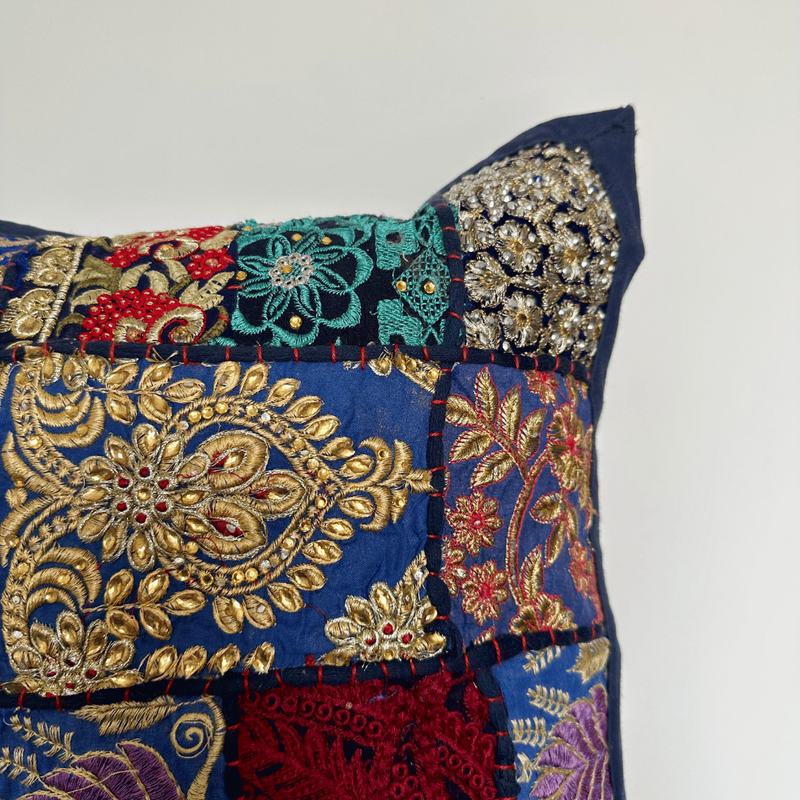 Traditional Gujarati Embroidery Cushion Case – Floral Embroidered Cotton Cushion Case Decorative Sofa Sham Bed Pillowcase -16″ Inch